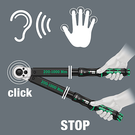 + Click-Torque E 1 Push R/L adjustable torque wrench for clockwise and anti-clockwise torque-control, 200-1000 Nm.
